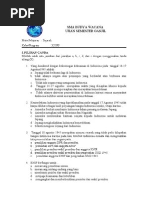 20.08.2021 · berikut di bawah ini, soal pg sejarah wajib kelas 12 semester ganjil kurtilas edisi revisi dilengkapi kunci jawaban dengan pertanyaan dimulai dari nomor 1.